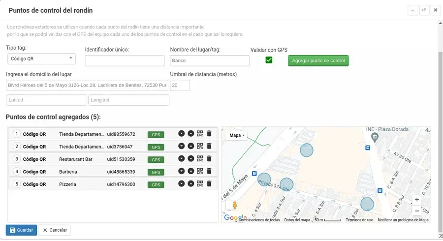 El operador podrá imprimir los códigos QR para identificar los puntos de control en los cuales el vigilante tendrá que asegurar que todo se encuentre correcto.
